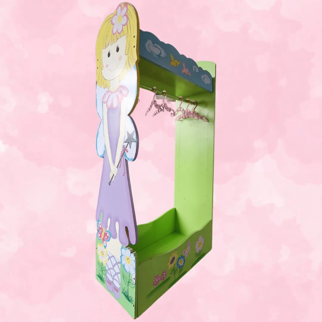 In good clean condition, Liberty is a fairy-themed dress up storage unit on wheels that will make a great addition to a child’s bedroom and playroom. Included in this unit is a hanging rail and storage at the top and bottom. On one end is a full-length fairy character and a child-friendly mirror on theContinue reading “Liberty House Toys Fairy Dress Up Storage Centre”