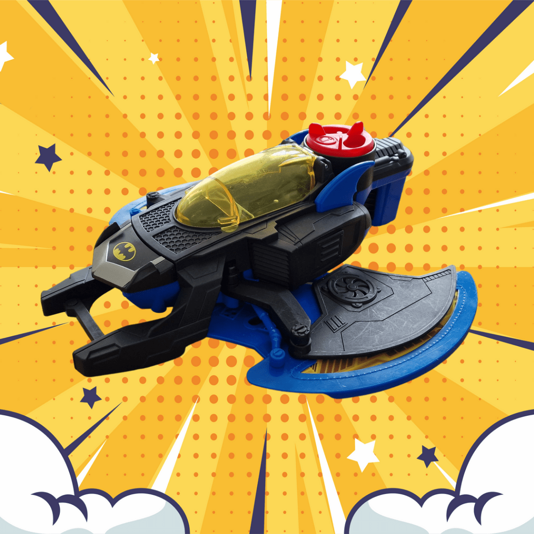 Squeeze trigger to open the wings and launch a projectile. Push the Power Pad to launch more projectiles. Includes Batwing and 3D printed replacement disk projectiles. For ages 3 to 8 years.