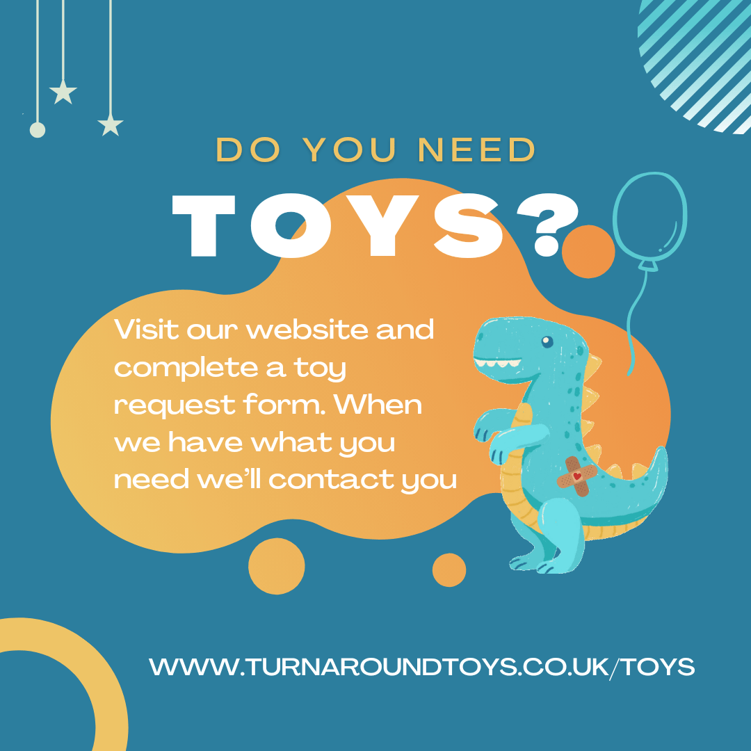 We have just updated our website to include a toy request form. If you’re in need of toys, simply visit http://www.turnaroundtoys.co.uk/toys and you can tell us what you need using the online form. As and when we have something suitable for you we will be in touch – it’s that simple! Please share with orContinue reading “Toy request form added”